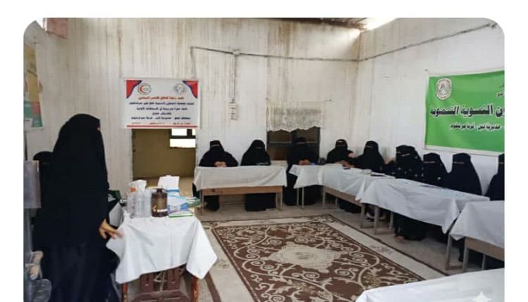 نظمت جمعية التعاون النسوية بمنطقة عبر لسلوم في مديرية تبن بمحافظة لحج، أمس الأحد، دورة تدريبية في الإسعافات الأولية والتمريض المنزلي، استهدفت 25 متدربة من مختلف مناطق القرية، وذلك برعاية الهلال الأحمر اليمني.