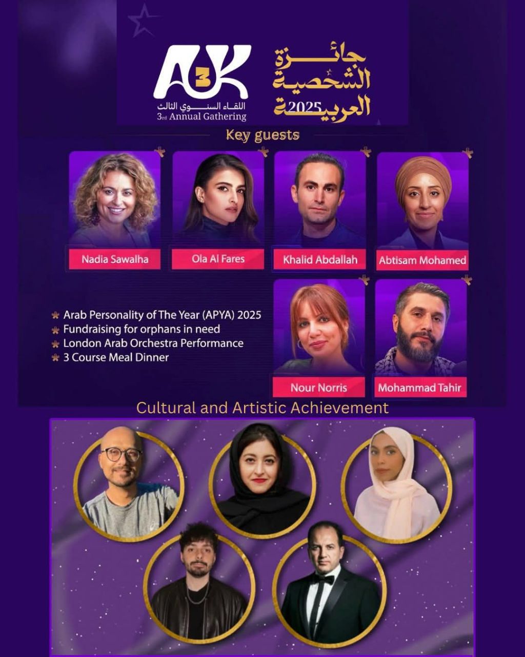 وتحتفي الجائزة، التي تُنظَّم في المملكة المتحدة منذ أعوام، بالشخصيات العربية التي ساهمت في تعزيز صورة العرب وإبراز إسهاماتهم وأدوارهم البناءة في مختلف المجالات، من بينها الفنون، والثقافة، وريادة الأعمال، والعمل الإنساني، والقيادة المجتمعية.