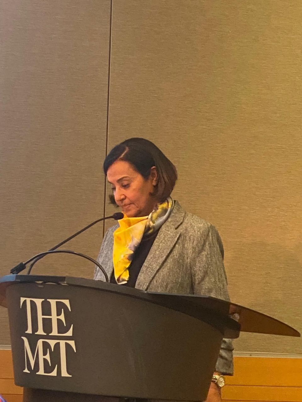 قدّمت مساء أمس الجمعة عالمة الآثار اليمنية الدكتورة عميدة شعلان محاضرة بعنوان “دور المرأة في الحضارات اليمنية القديمة” خلال أمسية ثقافية بمتحف المتروبوليتن للفنون بنيويورك، بحضور نخبة من الأكاديميين والباحثين والمتخصصين في مجال الآثار والتاريخ القديم.