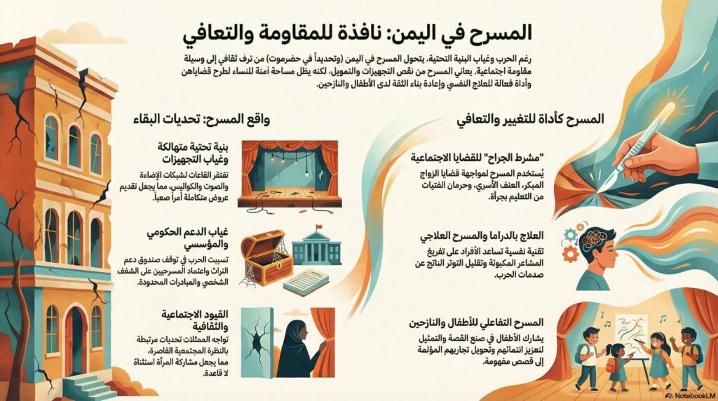 في بلد أنهكته الحرب لم يعد المسرح ترف ثقافي بقدر ما أصبح مساحة للتنفس والتعبير، ووسيلة مقاومة اجتماعية ونفسية في مواجهة الصمت.