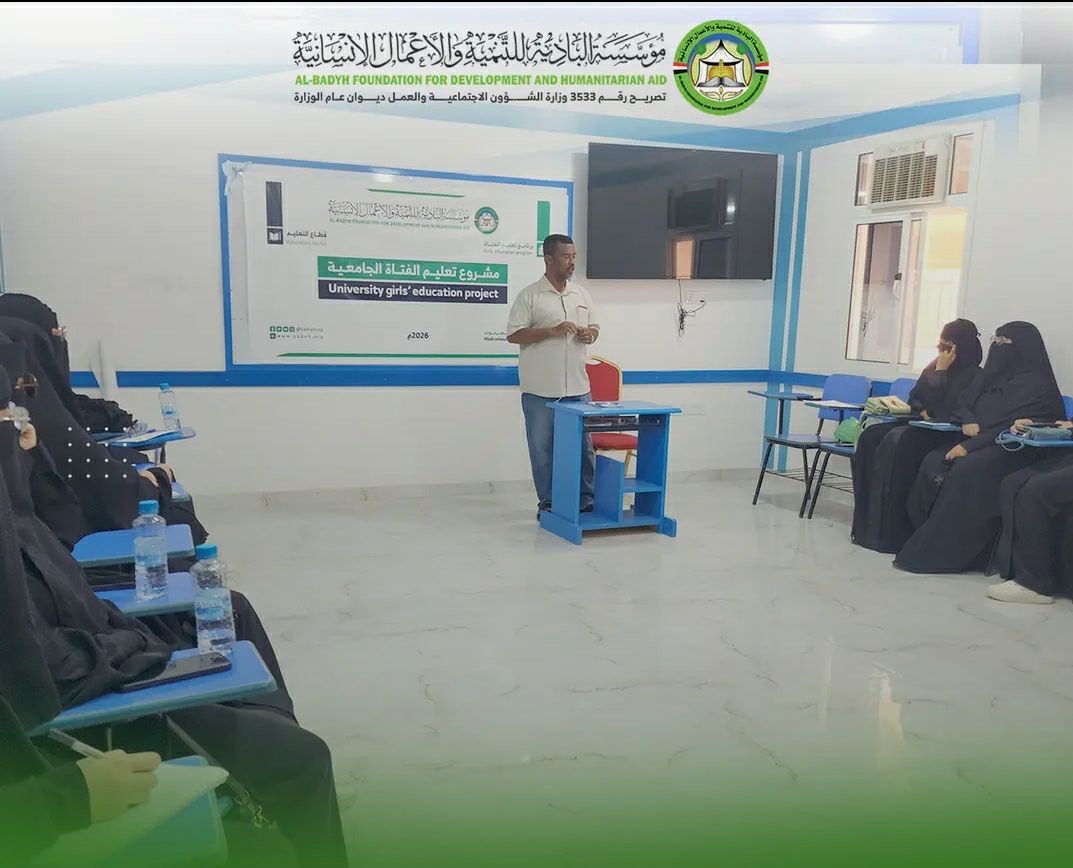 شهدت مدينة القطن بمحافظة حضرموت، اليوم الاثنين، تنفيذ دورة تدريبية متخصصة بعنوان “إدارة ضغوط العمل الطبي”، نظمتها مؤسسة البادية للتنمية والأعمال الإنسانية، مستهدفة طالبات مشروع تعليم الفتاة الجامعية في التخصصات الطبية، وذلك في مقر معهد النجاح للتدريب والتأهيل.